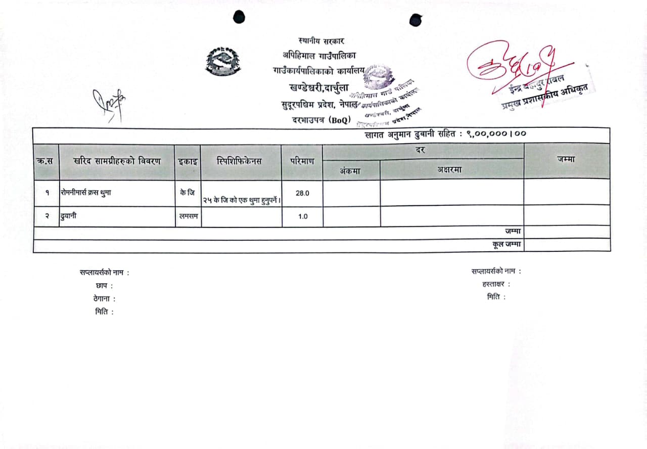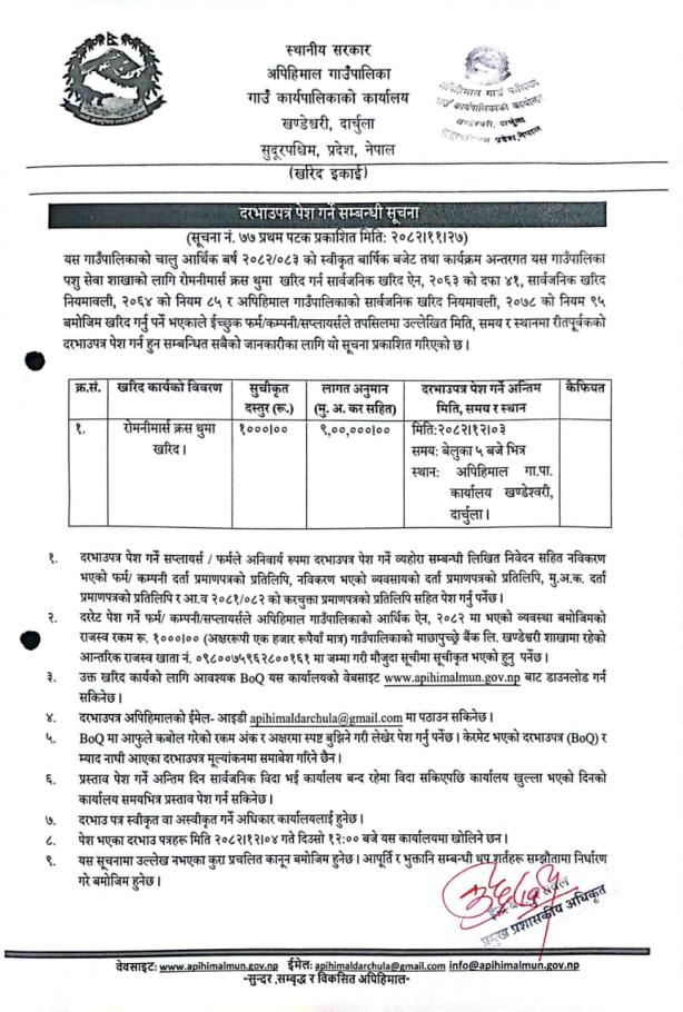 दरभाउपत्र पेश गर्ने सम्बन्धी सूचना(रोमनीमार्स क्रस थुमा)