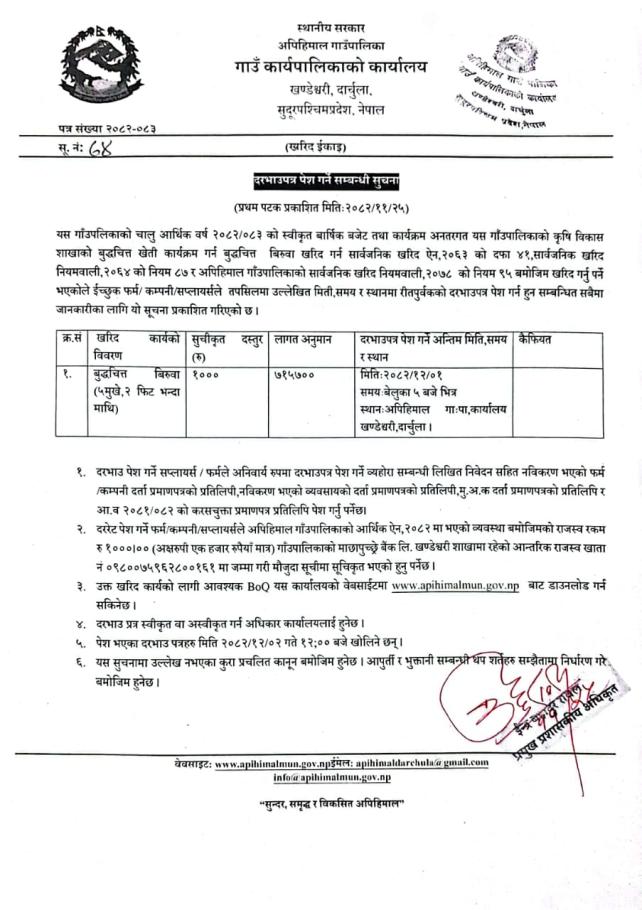 दरभाउपत्र पेश गर्ने सम्बन्धी सूचना(स्याउ विरुवा)