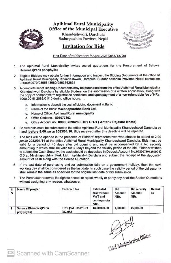 सार्वजनिक खरिद/बोलपत्र सूचना