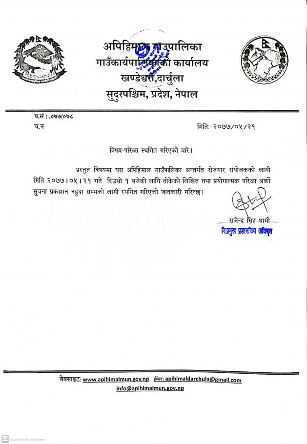 परिक्षा स्थगित बारे
