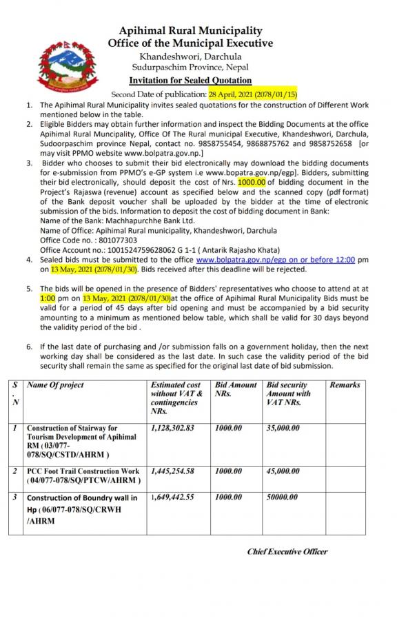 » पुनः सिलबन्दी दरभाउपत्र आव्हानको सूचना