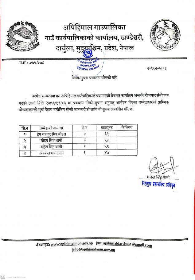 » रोजगार संयोजकको योज्ञताक्रम सम्बन्धि सुचना