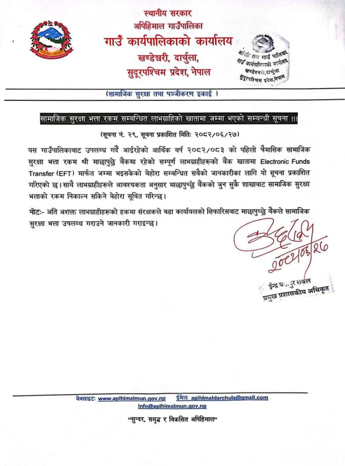 सामाजिक सुरक्षा भत्ता सम्बन्धित लाभग्राहिको खातामा जम्मा भएको जानकारी