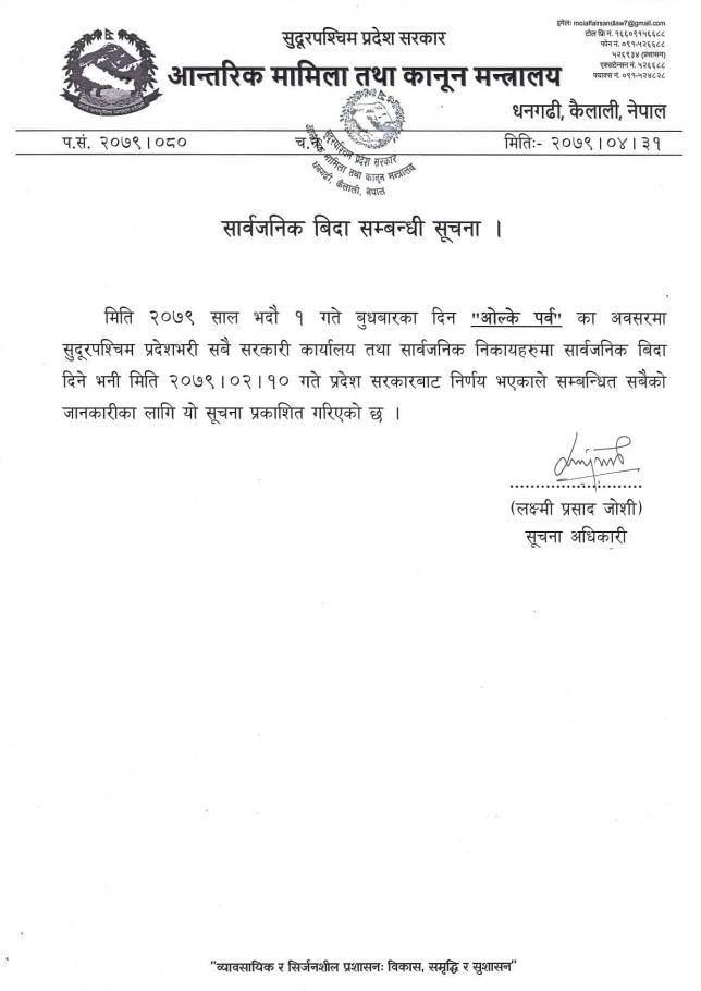 सार्वजनिक सुचना सम्बन्धि सुचना