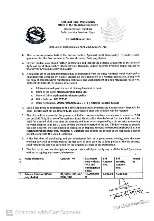 » Re-Invitation Of Bid(Satwa Rhizomes polyphyll)